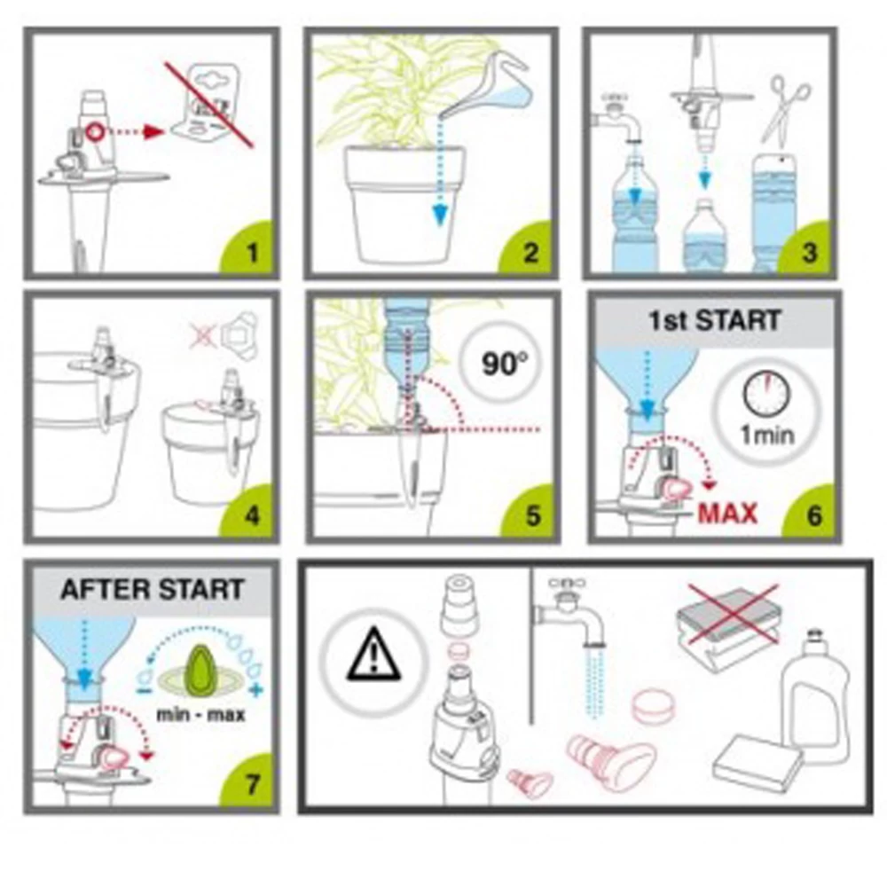 Met behulp van de Aquaflora Druppelaar kan iedereen met een gerust hart zijn groene woonkamer achterlaten. Door een petfles te vullen met water en op de Aquaflora druppelaar te draaien maak je in een handomdraai je eigen irrigatie systeem voor jouw planten. Maak een gaatje in de bodem van de fles en duw de punt van de Aquaflora Druppelaar in de grond. De constante druppelirrigatie geeft de plant voortdurend water en de hoeveelheid kan worden gereguleerd met de knop aan de voorkant.