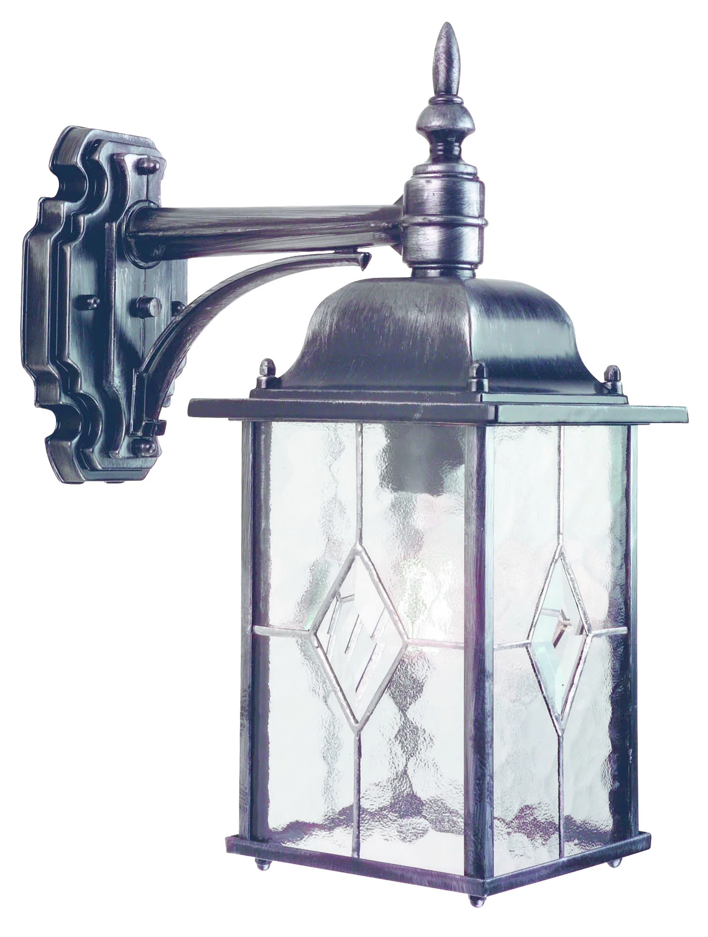 De Franssen Wexford serie is een prachtige gevellampenserie met een klassieke look. De lamp heeft een mooi afgewerkte vierkante kap en decoraties op het lichtvenster. Door de combinatie van zwart met zilver past deze lamp in elke tuin. De gevellamp Wexford is ook beschikbaar in de gevellamp up variant.