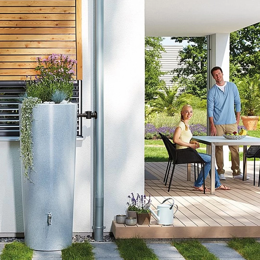 Deze moderne stijlvolle regenton Garantia 2in1 STONE past in elke tuin. De meegeleverde design kraan zorgt ervoor dat het opgevangen water makkelijk kan worden afgetapt. Bovendien is hij UV-stabiel, vorstebestendig en weersbestending. Ondanks dat wordt er wel aangeraden om de Garantia 2in1 STONE ton te legen in de vorstperiode en het kraantje open te laten. Hierdoor blijft je nieuwe regenton zo gloed als nieuw.