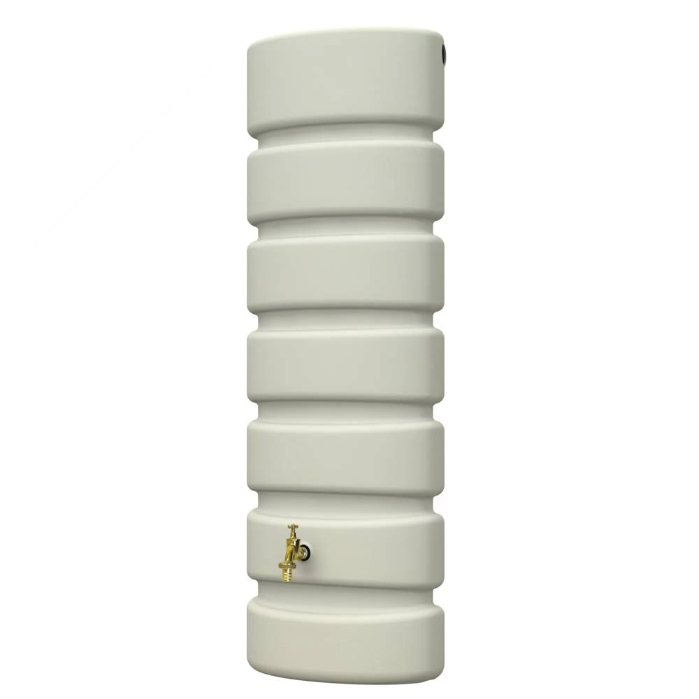 Beige kleurige moderne wandton van het merk Garantia, 300 liter, met luxe messing kraan. Inclusief windzekeringsset. – Grote opslag met minimaal ruimte gebruik – UV stabiel en weersbestendig. Hoogte 180 cm, lengte 60 cm, breedte 40 cm.