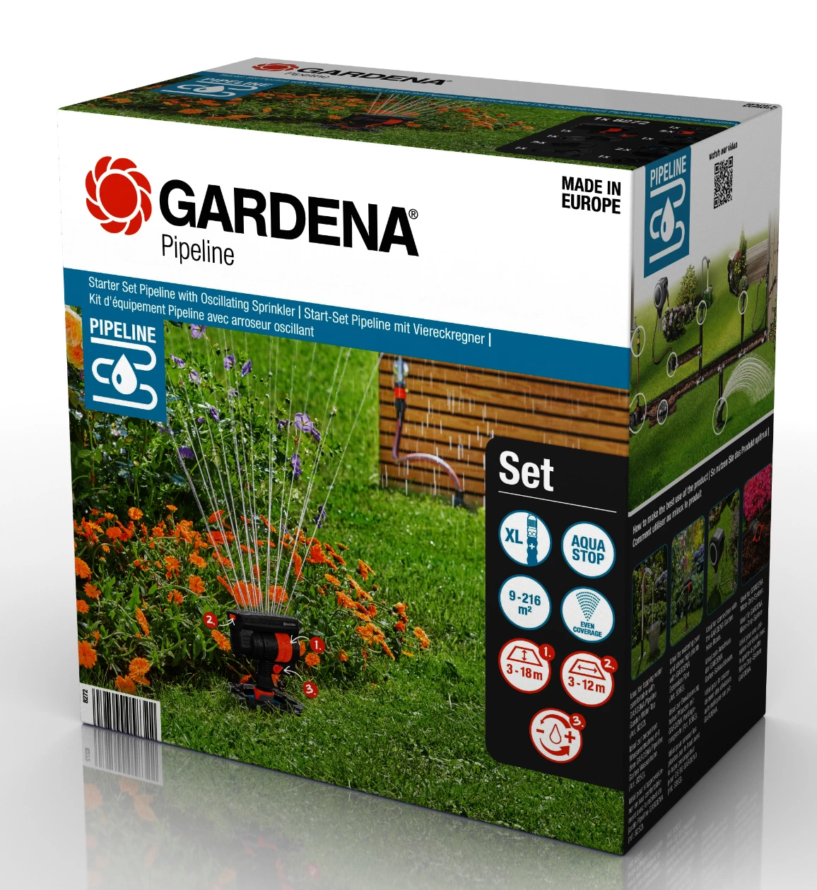De meegeleverde zwenksproeier bewatert gelijkmatig en nauwkeurig zones van 9 tot 216 m², zonder dat er plassen ontstaan. De Gardena Pipeline startset is voorzien van vuilzeven in het aansluitgarnituur en de waterverdelers en zwenksproeier bevatten een filter. Hiermee wordt het vuil opgevangen en worden verstoppingen voorkomen. De zeef en het filter kunnen eenvoudig worden verwijderd en onder de kraan worden schoongemaakt. Op het laagste punt van het systeem kan een ontwateringsventiel worden geïnstalleerd om zo het systeem te beschermen tegen vorst. Daarnaast zijn alle onderdelen gemaakt van hoogwaardige materialen, duurzaam en UV-bestendig.