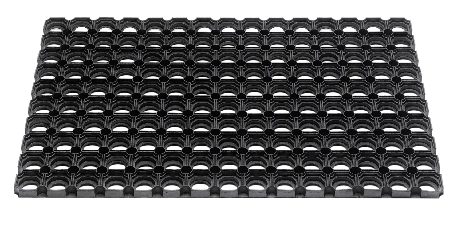 Ben je opzoek naar een simpele, handige en klassieke deurmat? Dan is deze domino echt wat voor jou. Hij is doorlatend voor vuil en vocht wat je huis voor je naar binnenstapt net een stukje schoner houdt. Ook erg handig is dat je deze matten onderling aan elkaar kunt koppelen. Je kunt hem precies neerleggen waar hij past door hem eenvoudig op het gewenste formaat te knippen. Deze zwarte buitenmat is gemaakt van rubber. De mat is 50cm lang, 80cm breed en 22cm dik.