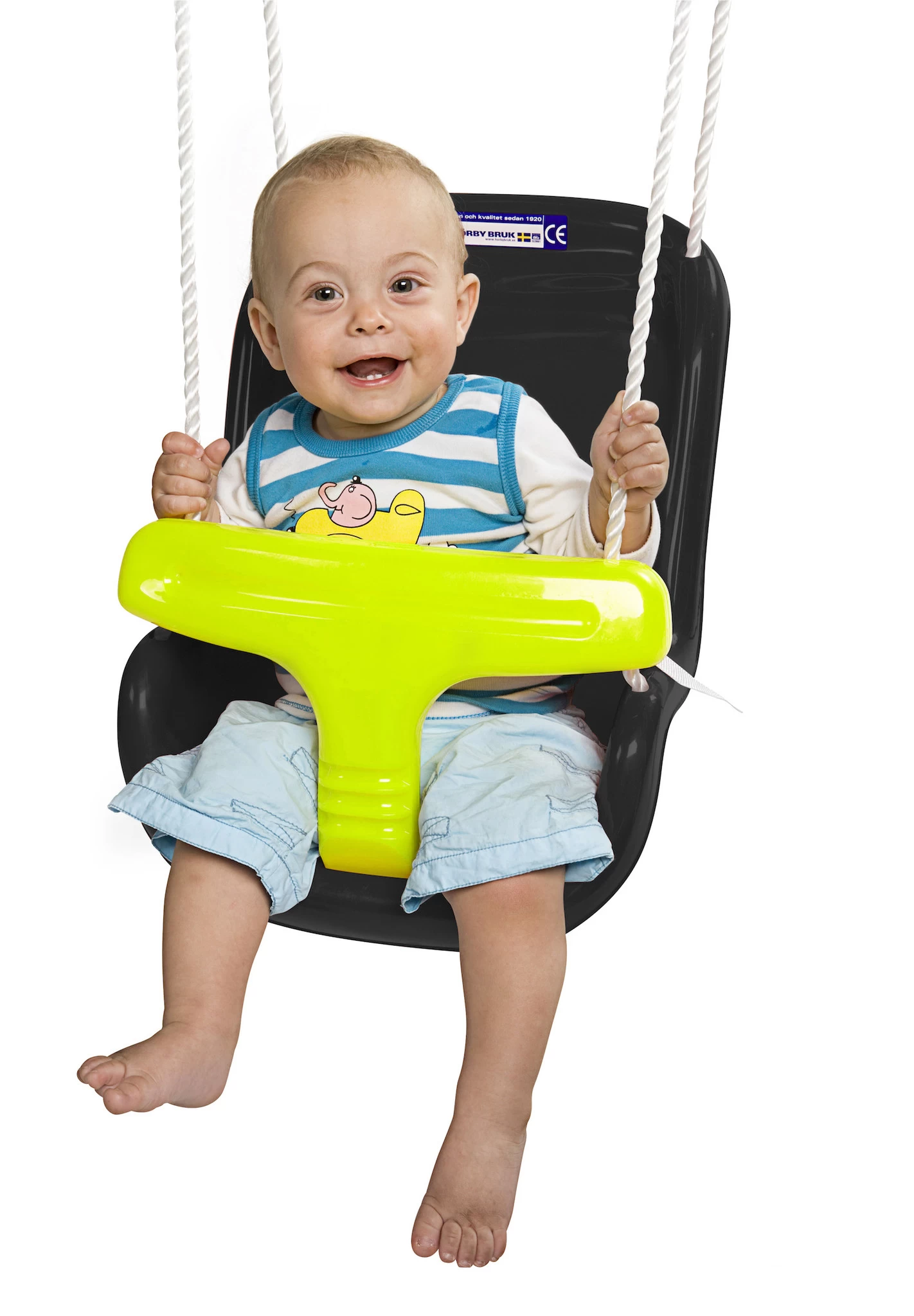 De Hörby Bruk baby schommelzit zwart is een exclusieve schommelstoel met stevige metalen ringen die de veiligheid van jouw kleintje garanderen. De extra hoge rugleuning van deze Hörby Bruk baby schommelzit zorgt voor veel comfort en vergroot het speelplezier! Daarnaast is deze schommelzit CE-gemarkeerd en goedgekeurd. Zo blijft het schommelen leuk, voor zowel ouder als kind! deze Hörby Bruk schommelzit is geschikt voor de leeftijd 6 maanden tot 4 jaar.