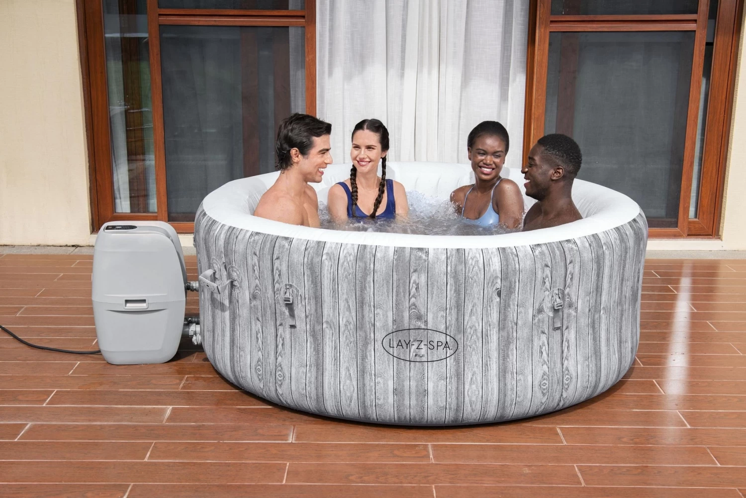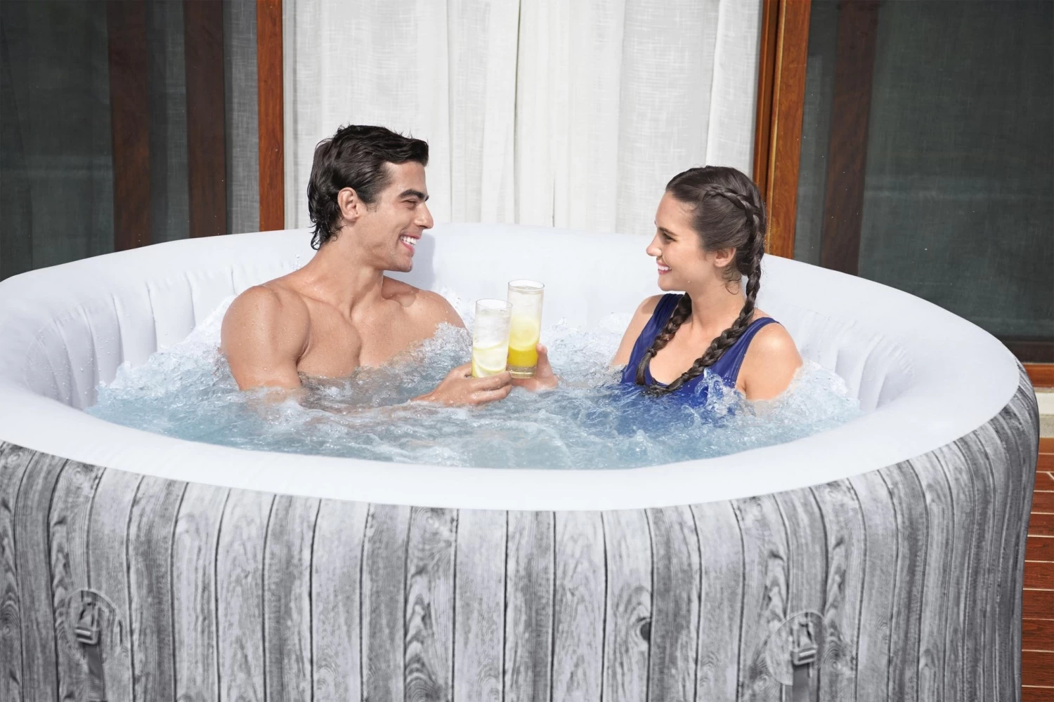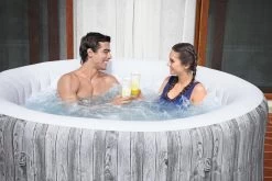 Opblaasbare ronde spa voor 2-4 personen met een lichte houtprint. Buitenkant en top ring van DuraPlus materiaal en een liner met mozaïek print op de zachte, isolerende bodem. Pomp heeft een nieuw flip up controle paneel met modern touchscreen, met daarachter klein plateau voor bekers enz. Pomp beschikt ook over Power Saving System (automatische start/stop timer) en Freeze shield (gaat automatisch aan onder 6° C). Met ingebouwde drainagepijp en 2 handgrepen, opblaasbare cover, filtercartridge, reparatiepatch en een Chemconnect. Verhoogt de temperatuur met 1,5-2,0° C per uur. Max. temp. 40° C. Filtercap.: 1,3 m³/u. Watercapaciteit: 669 ltr. CE/GS gekeurd. Afm. buiten: Ø 180×66 cm, binnen: Ø 132 cm.LET OP: Bij het retourneren van dit artikel worden kosten in rekening gebracht. Omdat het artikel te groot is om door een reguliere pakketbezorger te worden opgehaald, gebeurt dit separaat door een transporteur. De kosten hiervan, €35, worden bij jou in rekening gebracht. Om onnodige kosten te voorkomen adviseren wij jou om goed te controleren of je het juiste artikel koopt. Voor vragen hierover kun je contact opnemen met de klantenservice.