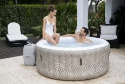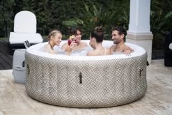 Opblaasbare ronde spa voor 2-4 personen met een geometrische print. Buitenkant en top ring van DuraPlus materiaal en een liner met mozaïek print op de zachte, isolerende bodem. Pomp heeft een flip up controle paneel met touchscreen, met daarachter klein plateau voor bekers enz. Smart bestuurbaar door middel van Bestway app. Pomp beschikt ook over Power Saving System (automatische start/stop timer) en Freeze shield (gaat automatisch aan onder 6° C). Met ingebouwde drainagepijp , 2 handgrepen, opblaasbare cover, filtercartridge, reparatiepatch en een Chemconnect. Verhoogt de temperatuur met 1,5-2,0° C per uur. Max. temperatuur 40° C. Filtercap.: 1,3 m³/u. Watercap.: 669 ltr. CE/GS gekeurd. Afm. buiten: Ø 180×66 cm, binnen: Ø132 cm.LET OP: Bij het retourneren van dit artikel worden kosten in rekening gebracht. Omdat het artikel te groot is om door een reguliere pakketbezorger te worden opgehaald, gebeurt dit separaat door een transporteur. De kosten hiervan, €35, worden bij jou in rekening gebracht. Om onnodige kosten te voorkomen adviseren wij jou om goed te controleren of je het juiste artikel koopt. Voor vragen hierover kun je contact opnemen met de klantenservice.