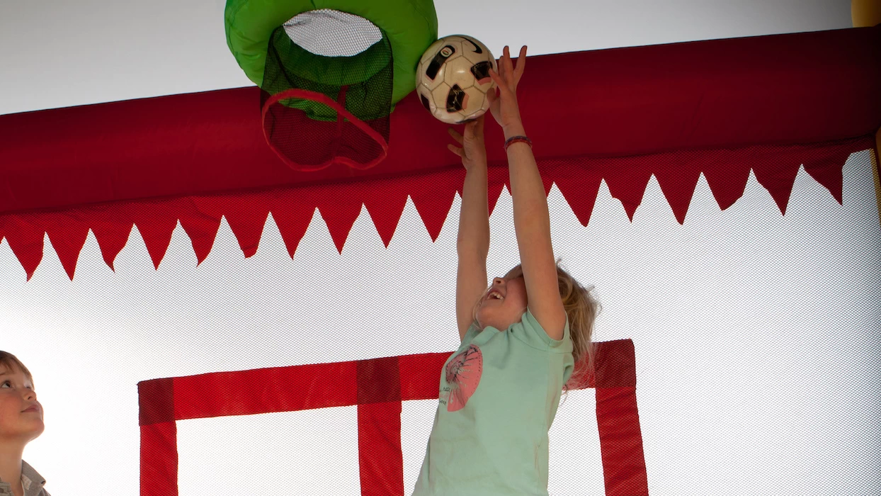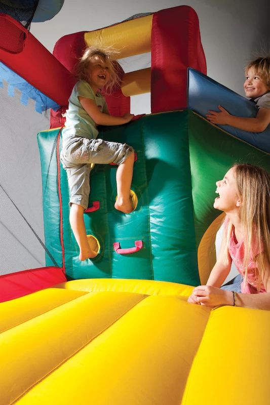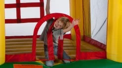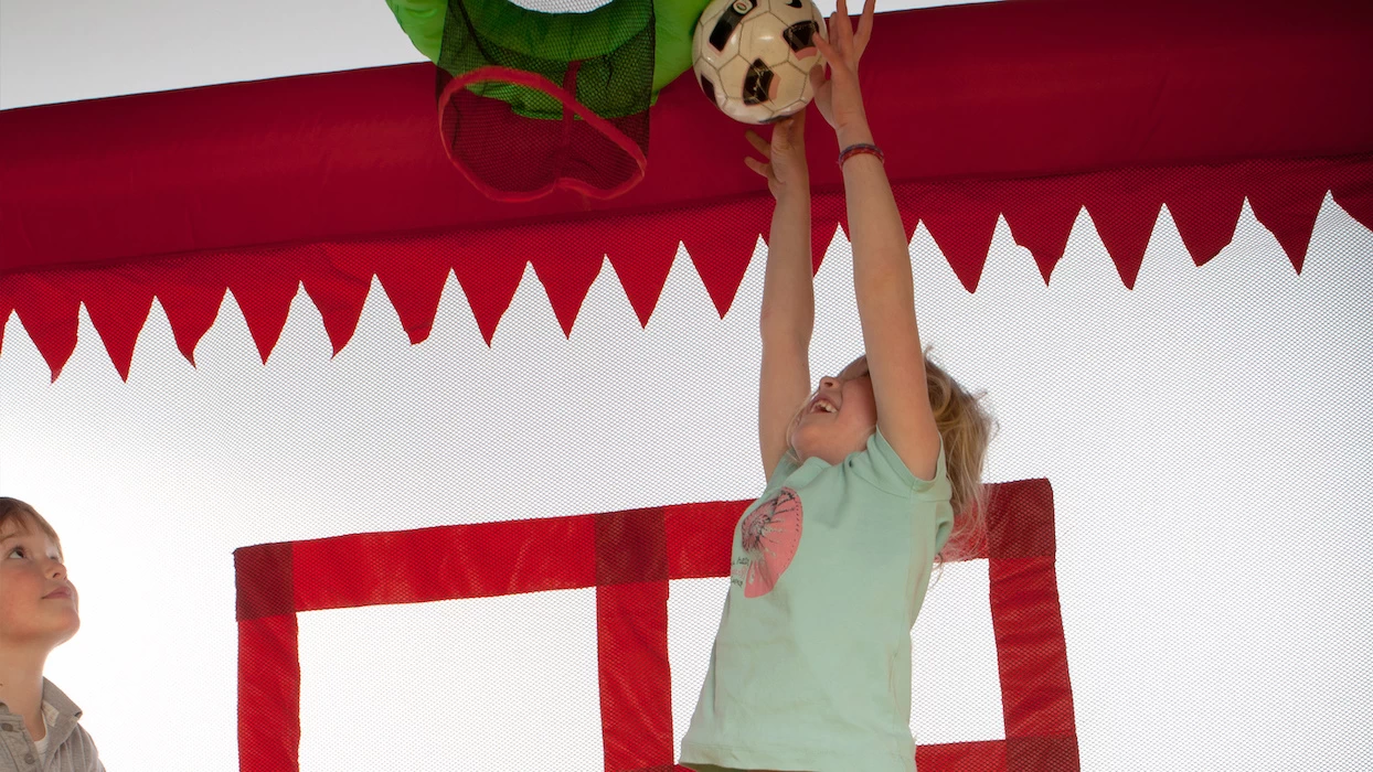 Dankzij de blower (die krijg je erbij) staat dit grote luchtkasteel binnen enkele minuten fier overeind in jouw achtertuin. Klaar met springen? Dan berg je het luchtkasteel gemakkelijk op in de meegeleverde opbergtas. De grote kinderen (lees: papa en mama) kunnen ook even spelen, want het speeltoestel draagt maar liefst 180 kilo. Er is een brede glijbaan, een ballenbak, een klimmuur en een basketbalnet.