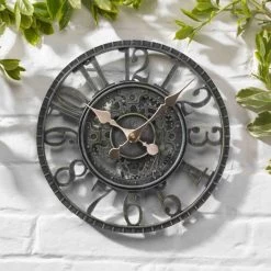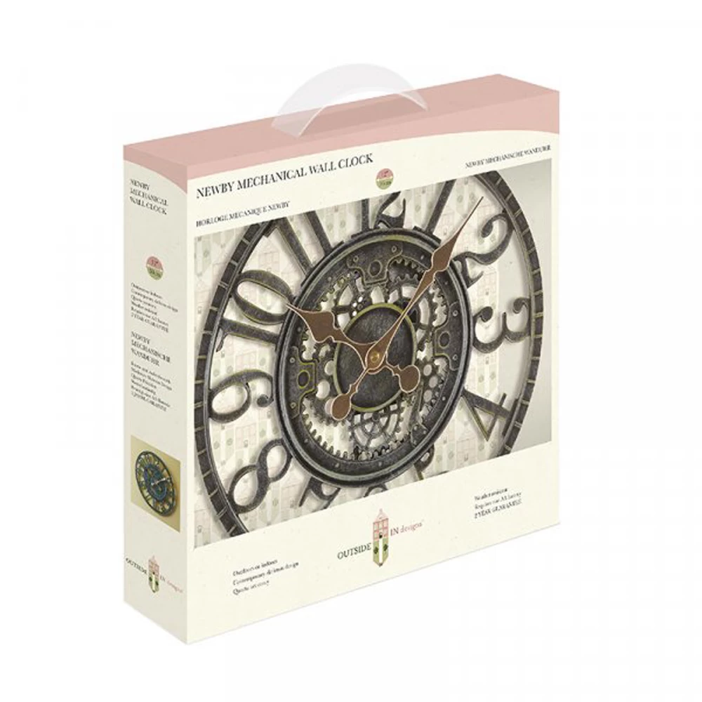 De Newby mechanische wandklok is een opvallende klok met mechanische look. Dankzij een bronseffect met gedetailleerde tandwielen en Romeinse cijfers is dit een ware eye-catcher. De klok is gemaakt van weerbestendig materiaal en is daardoor zowel geschikt voor binnen als voor buiten.