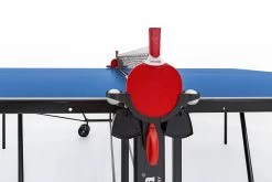 De Sponeta HobbyLine S1-43e outdoor is een uitstekende tafeltennistafel voor de beginnende tafeltennisspeler. Op de S1-43e kan jij al je trucjes oefenen om zo een echte kampioen te worden in tafeltennis! Doordat de speeltafel niet onderhevig is aan invloeden van regen en zon kan deze het gehele jaar door buiten blijven staan. Mocht je hem toch willen opbergen of verplaatsen, dan is de S1-43e gemakkelijk op te klappen en te verrijden dankzij de dubbele transportwielen. Deze speeltafel voldoet aan de officiële wedstrijdtafel afmetingen (274×152,5 cm) en heeft een tafelbladdikte van 4 mm. Het groene blad is vervaardigd uit melaminehars en voorzien van de officiële witte belijning. Deze kunststof soort is onbreekbaar en staat bekend om zijn extreem lange levensduur.