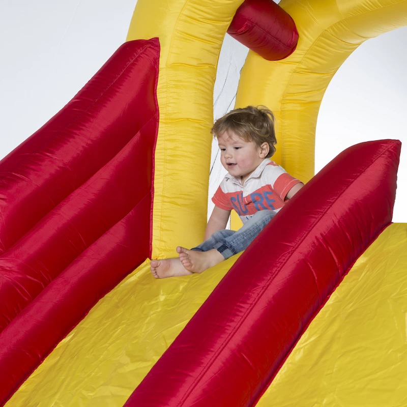 Springkussen: check. Twee glijbanen: check. Kinderbadje: check. Basketbalcourt: ook check!! Het Avyna Double Mega Slide 4-1 springkasteel heeft het allemaal. Eindeloos speelplezier voor de kinderen dus! En misschien ook voor jou, als niemand kijkt? Of als ze ’s avonds op bed liggen? Doen! Is veel leuker dan schoonmaken. Of de was doen. Of administratie. Even een sprongetje.