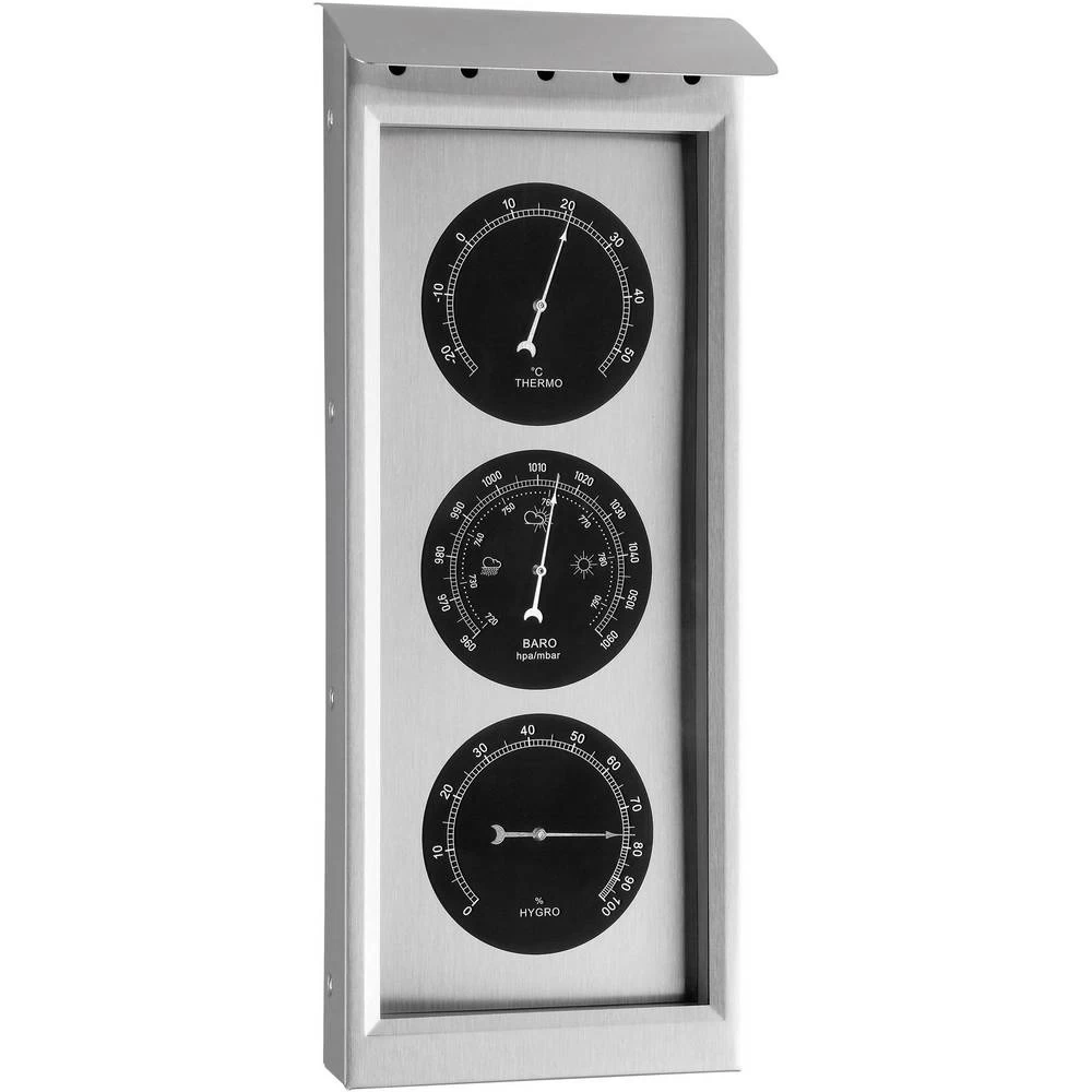 Dit weerstation voor buitengebruik geeft de relatieve luchtvochtigheid, huidige temperatuur en luchtdruk weer. Dankzij het roestvrij staal waarvan dit weerstation is gemaakt, is deze weersbestendig en kan deze het hele jaar door buiten blijven hangen.